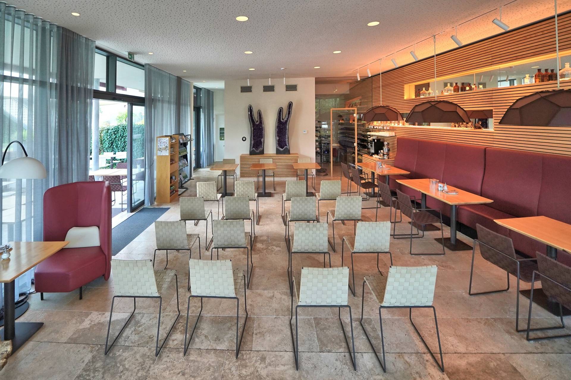 Dieser einzigartige Veranstaltungsort bietet eine ideale Kulisse für Corporate Events und verbindet Eleganz mit Funktionalität. Mit vielseitigen Räumen, die sich für Seminare, Konferenzen und Feierlichkeiten eignen, garantiert er den Teilnehmern ein unvergessliches Erlebnis. Das harmonische architektonische Design und die modernen Einrichtungen werden durch eine beruhigende natürliche Umgebung ergänzt, die Kreativität und Produktivität fördert. Die Kunden können sich auf einen raffinierten Speisebereich und eine einladende Atmosphäre freuen, die Networking und Zusammenarbeit begünstigt. Darüber hinaus ist die Location gut erreichbar und befindet sich in der Nähe wichtiger Verkehrswege, was sie zu einer praktischen Wahl für Unternehmen macht. Maßgeschneiderte Angebote und Eventplanungsdienste sind darauf ausgelegt, die spezifischen Bedürfnisse jeder Gruppe zu erfüllen und eine nahtlose Ausführung zu gewährleisten. Ob für ein strategisches Meeting oder eine Teambildungsveranstaltung, dieser Veranstaltungsort verpflichtet sich, außergewöhnlichen Service und Aufmerksamkeit für Details zu bieten, damit Unternehmen sich auf ihre Ziele konzentrieren können, während sie ein bereicherndes Erlebnis genießen.